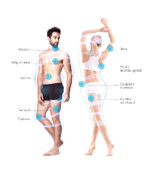 Il est possible de traiter différentes zones du corps, parmi elles : le ventre, les poignées d’amour, la culotte de cheval, les cuisses, les genoux et les bras, le double menton.